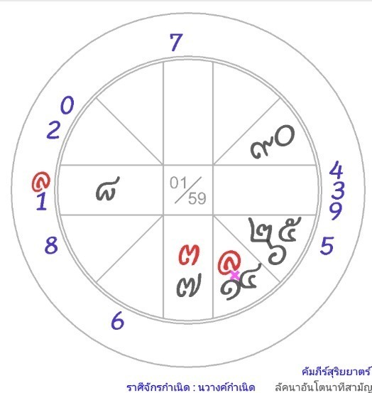 ... ลัคนาราศีพิจิก ... ดาวเจ้าเรือนปัตนิคือดาว ๖ ไปเป็นมหาจักรในราศีธนู ...