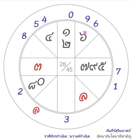 ... เรื่องที่ชอบการเสี่ยงการพนันดูที่ ดาว ๕ กฎุมภะ [ ทรัพย์ ] + ปุตตะ [ การเสี่ยงโชค ] ... ได้ตำแหน่งนิจจ์ [ ต่ำช้า ] ...