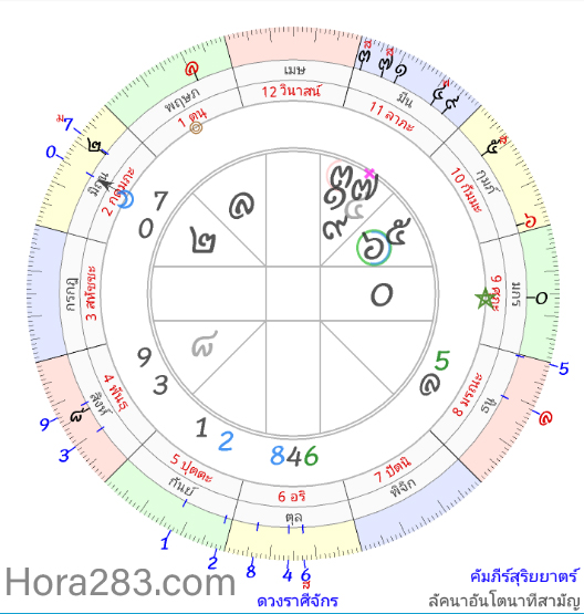 ดาวศุกร์เป็นตนุลัคน์ สำหรับในช่วงปี 75-76 ดาวเสาร์เป็นเจ้าเรือนศุภะและยังเป็นเจ้าเรือนวินาสน์ของตนุลัคน์ด้วยโคจรมาทับดาวจันทร์เจ้าเรือนอริที่เรือนปุตตะของตนุลัคน์ ในระยะที่ดาวเสาร์จรมาทับดาวจันทร์นั้นเจ้าชะตาก็อาจจะมีเรื่องที่ต้องเสียเงินไปกับบริวารญาติพี่น้องและคนรอบข้างซะมากกว่าครับ สำหรับดาวที่เกี่ยวข้องกับมารดาคือดาวอาทิตย์และดาวศุกร์เจ้าเรือนพันธุ ดังนั้น เรื่องที่ดาวเสาร์ทับจันทร์จึงไม่เกี่ยวข้องกับสุขภาพของแม่ครับ