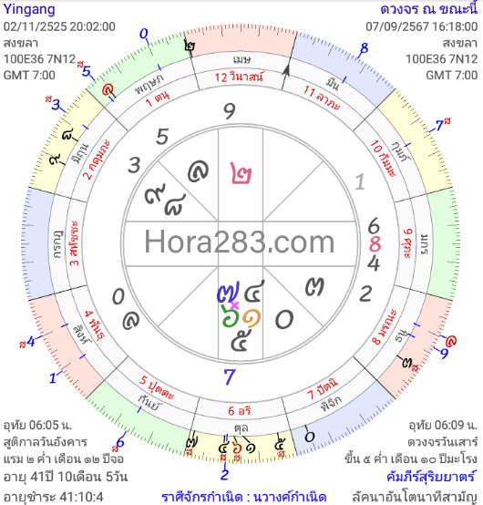 ดาวประจำตัวคือดาวศุกร์ครับเป็นเกษตรเข้มแข็ง และดาวศุกร์ก็ยังเป็นตนุเศษด้วย ส่วนดาวมฤตยูนั้นอยู่ในเรือนคู่ครองของลัคนาครับ ส่งผลให้เจ้าชะตามีคู่ยาก หรือมีคู่ครองก็จะต้องอยู่ห่างไกลกันหรือทำงานคนละที่ครับ
